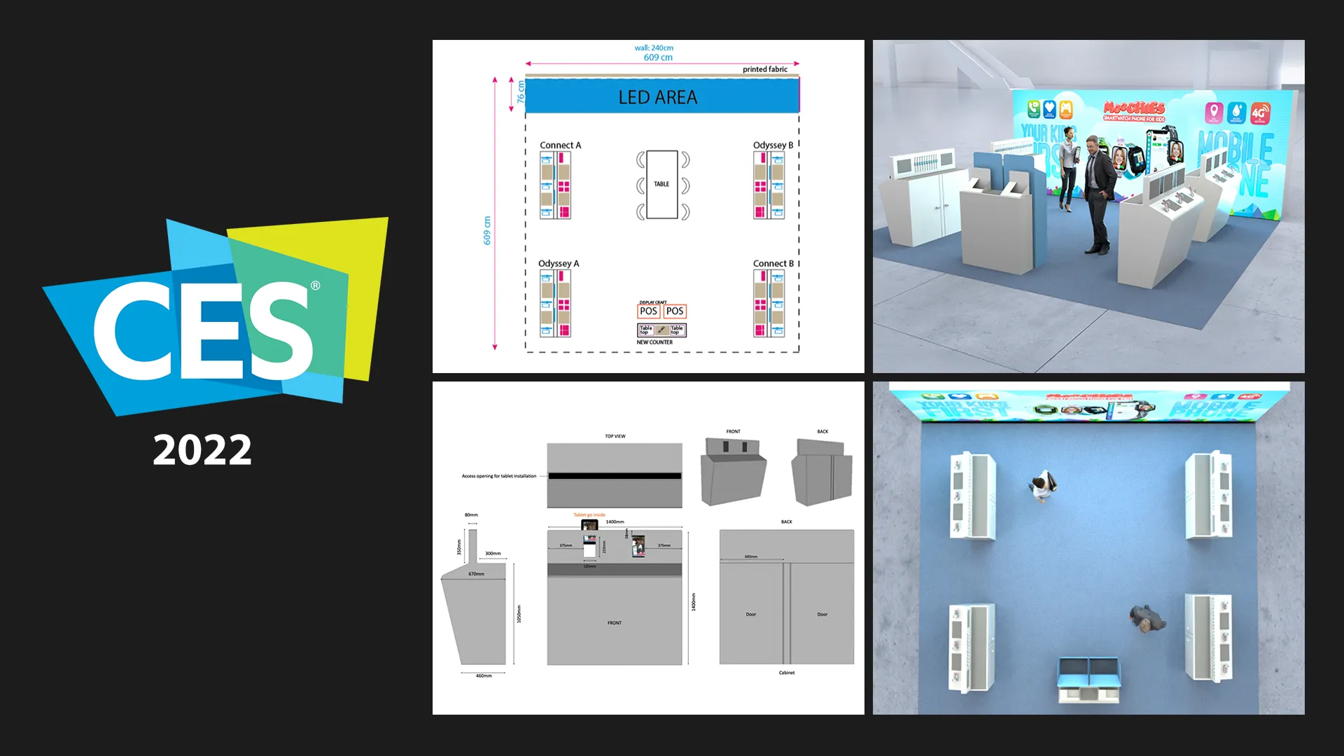 Projeto de design e comunicação para o stand da Moochies na CES em Las Vegas, abrangendo estudos de fluxo, concepção visual, acompanhamento de produção e adaptação da comunicação para todas as mídias do espaço expositivo, garantindo clareza, consistência e impacto no ponto de contato com o público.